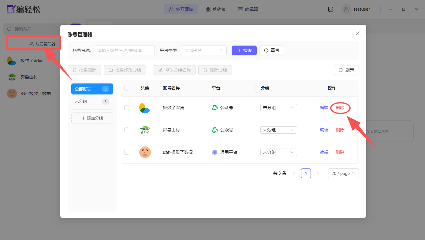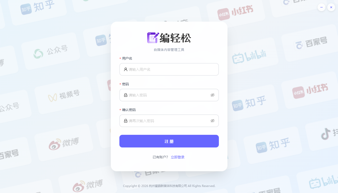 编轻松公众号助手PC版是专为新媒体运营者设计的专业管理辅助软件,支持多平台多账号高效批量便捷管理、AI图文编辑、数据统计等核心功能,显著提升运营效率。